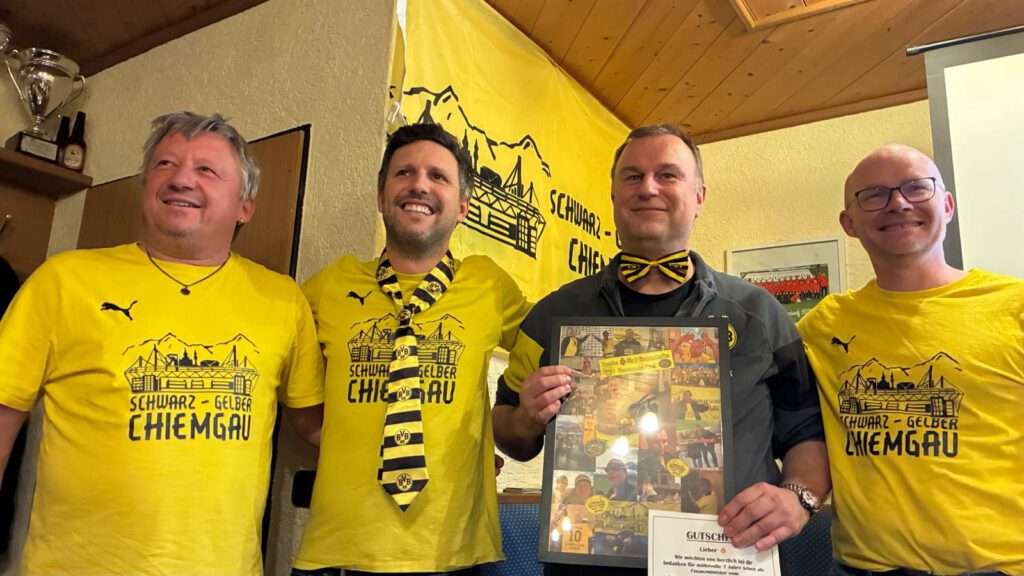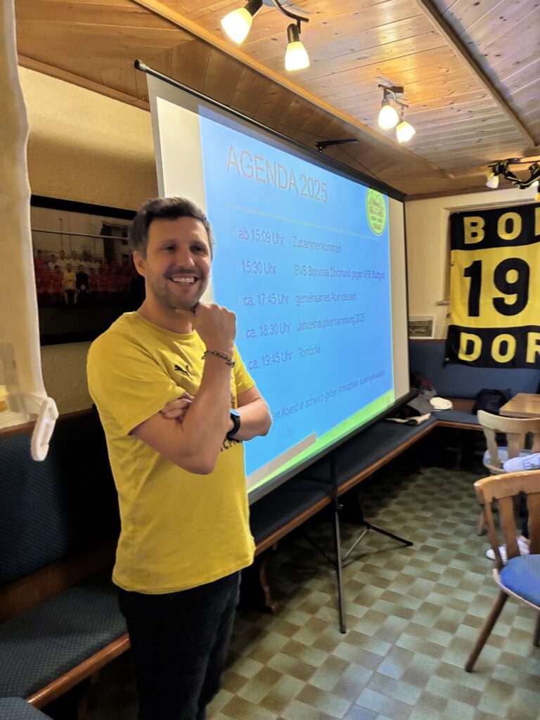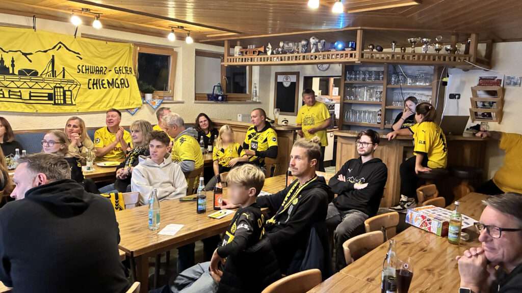 Am 22.11.2025 fand die alljährliche Jahreshauptversammlung des BVB Fanclubs Schwarz Gelber Chiemgau im Sportheim der DJK Nußdorf statt. In diesem Kontext möchten wir uns für die Gastfreundschaft der DJK, die uns zu einigen unserer Events ihr Vereinsgelände wieder uneigennützig zur Verfügung stellte, herzlichst bedanken. Die JHV begann 15:09 Uhr mit dem gemeinsamen Schauen des Bundesligaspiels unserer Borussia. Im Anschluss daran wurde gemeinsam gegessen und sich über dies und das, des abgelaufenen Vereinsjahres ausgetauscht.